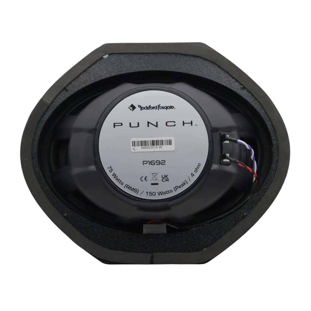 Fanatics that need a great sounding speaker to replace factory installed garbage will certainly benefit from this Punch series full-range speaker. The P1692 offers a Flex Fit™ basket to ensure compatibility with odd shaped factory speaker locations and an ICC (Integrated Concealed Crossover), eliminating the need to mount any black boxes.